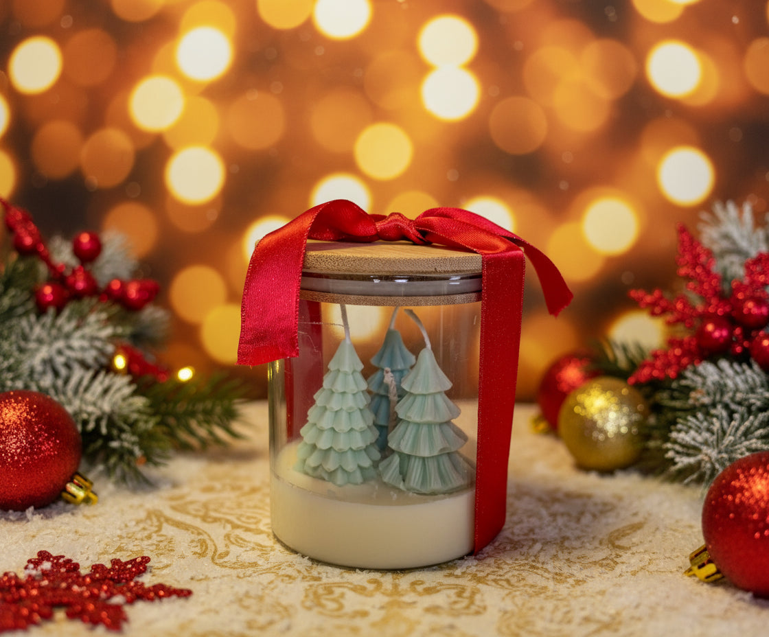 Svečka Božični gozd združuje naravne note smreke, bora in toplega lesa, ki ustvarijo občutek sprehoda po zasneženi gozdni poti.