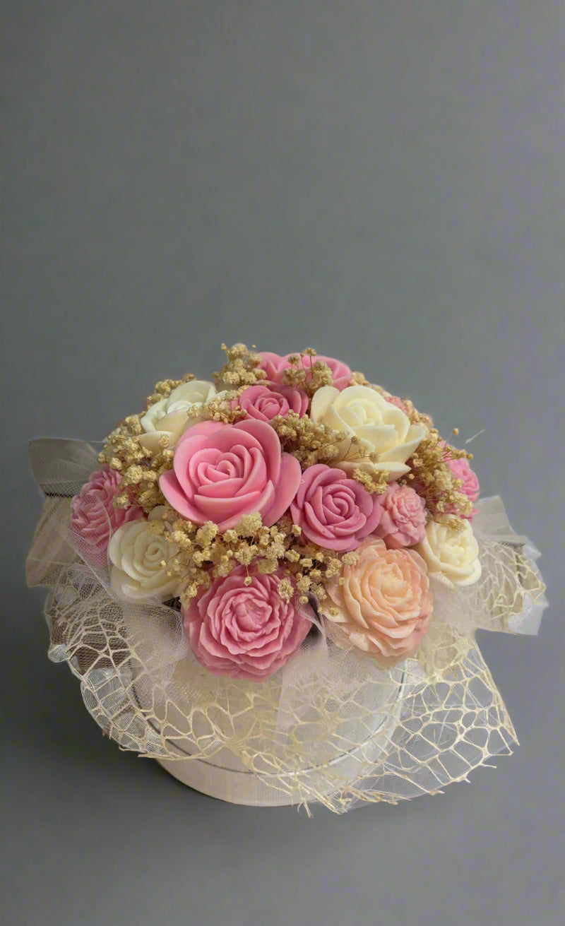 Eleganten šopek ročno izdelanih vrtnic iz naravnega sojinega voska, ki združuje brezčasno lepoto cvetja in toplino dišečih voskov. Vsaka vrtnica je skrbno oblikovana, da spominja na pravo cvetlico, ob topljenju pa sprošča prijetno aromo, ki ustvari romantično in sproščujoče vzdušje.