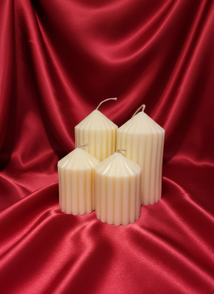 Svečana in elegantna – sveča Stolp s svojim rebrastim vzorcem in stožčasto obliko spominja na majhen arhitekturni detajl. Njena minimalistična podoba v prostoru izstopa kot dekorativen kos, hkrati pa prinaša občutek topline in umirjenosti.