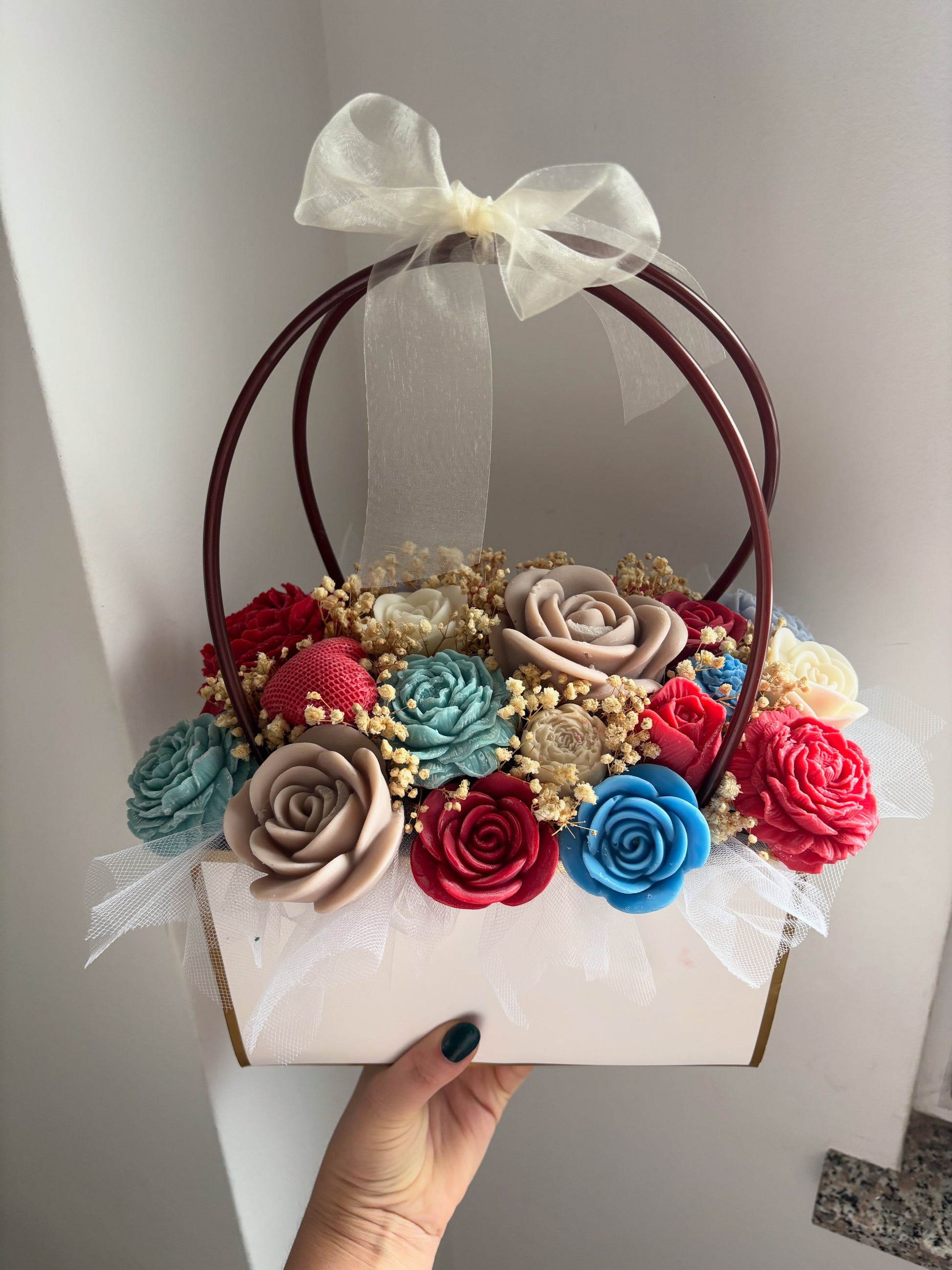 Vsak šopek je ročno izdelan iz rož iz sojinega voska – obstojnih, trajnih, dišečih dekorativnih rož, ki se ne posušijo in ne ovenijo.