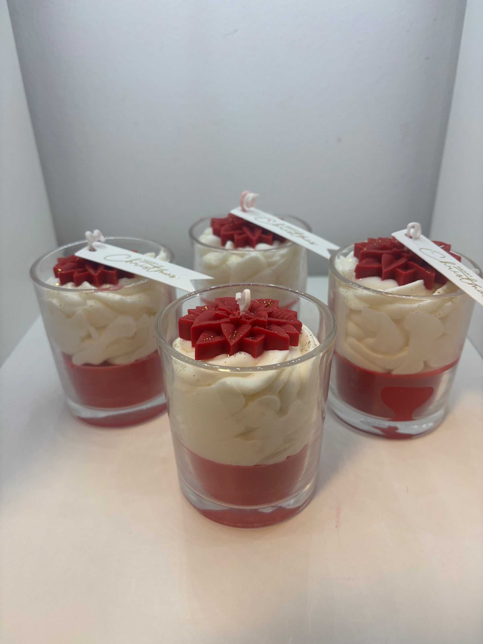 Razvajajte svoje čute z našo praznično svečo “Božična zvezda”, ki prinaša toplino in magijo praznikov v vsak dom. Sveča je ročno ulita v steklo, okrašena v elegantnih rdeče-belih odtenkih in posuta z nežnim zlatim sijajem. Vrh krasi prekrasen relief božične zvezde, ki doda pravo praznično eleganco.