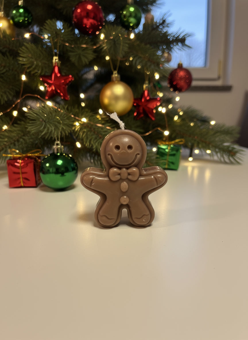 Vsaka svečka je ročno vlita iz naravnega sojinega voska, ki gori čisto in brez škodljivih snovi. Njena igriva oblika medenjaka in prijeten vonj pričarata pravo božično vzdušje – kot bi pravkar odprli pečico polno sveže pečenih piškotov.